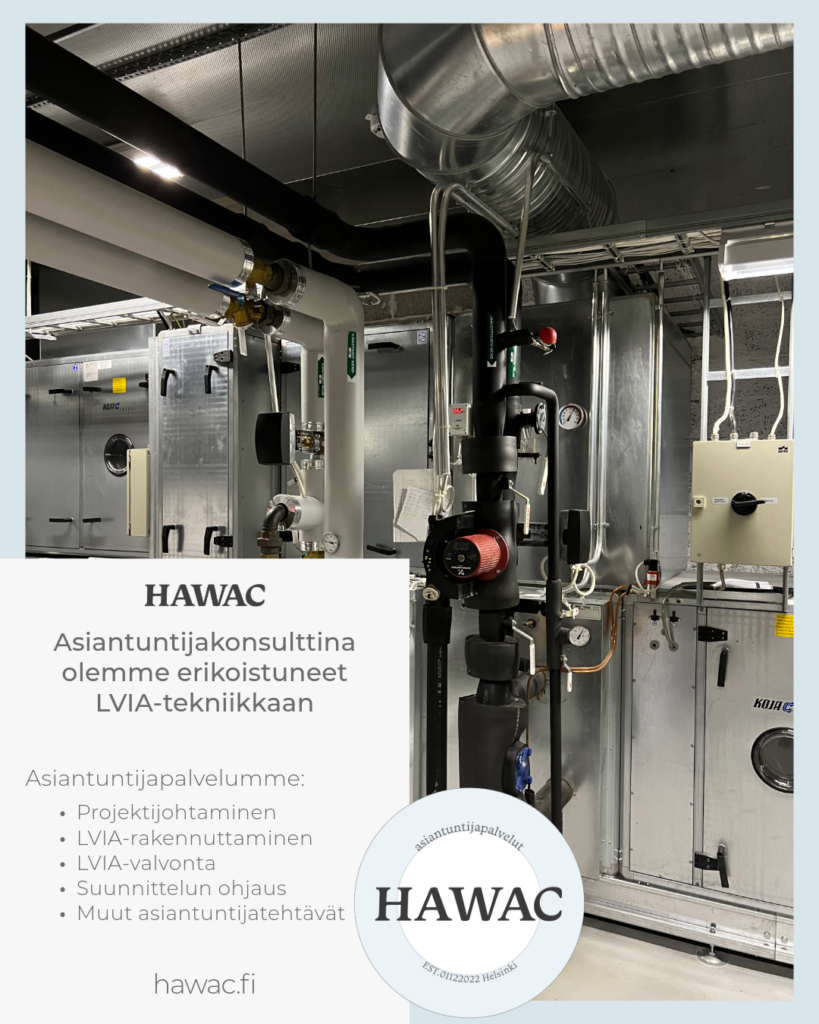 Konsulttina olemme LVIA-tekniikan asiantuntija HAWAC on LVIA-tekniikan asiantuntija, jonka tavoitteena on tarjota tilaajan tarvetta vastaava asiantuntemus ja osaaminen osaksi rakennushankkeitanne. Asiakkaamme etsivät ensisijaisesti luotettavaa ja asiantuntevaa...